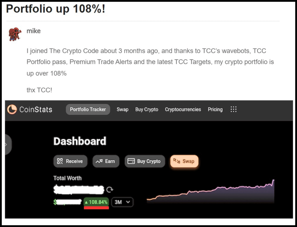 *The results and experiences shared in these testimonials are individual to each member and are not typical. Trading cryptocurrencies involve risk, and there is no guarantee of future results. Your results may vary based on market conditions, capital, risk tolerance, and trading experience.